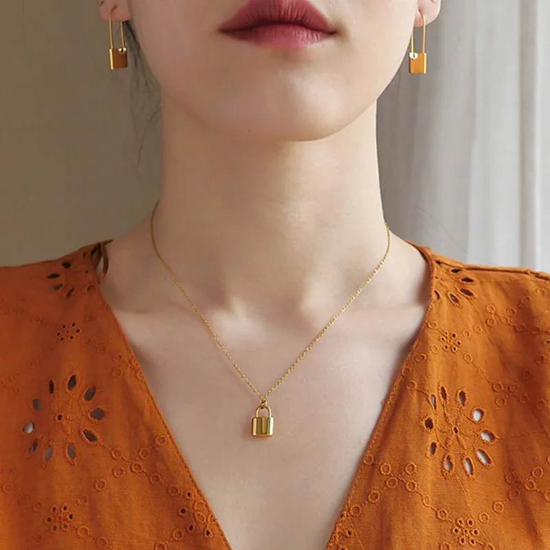 Collar en acero inoxidable con dije de candado